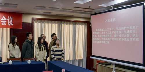 新社员集体宣读入社承诺,并结合自身专业和入社初心作交流发言;老社员代表殷会夫为大家讲述了自己在本职岗位上、社务工作中的成长之路、追梦故事;胡泽平分四个方面介绍了社务工作主要内容,重点分享了撰写社情民意信息工作体会。