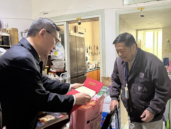 潘连宇一行先后来到市委会原主委罗小伦及高龄会员方精忠、李孝洁家中,为他们送上慰问品,并与他们亲切交谈,询问老同志们的身体状况、饮食起居及生活近况,转达了组织的深切关怀与温暖祝福。慰问中,潘连宇还向老同志们介绍了市委会近期的重点工作进展,认真听取他们的意见建议。