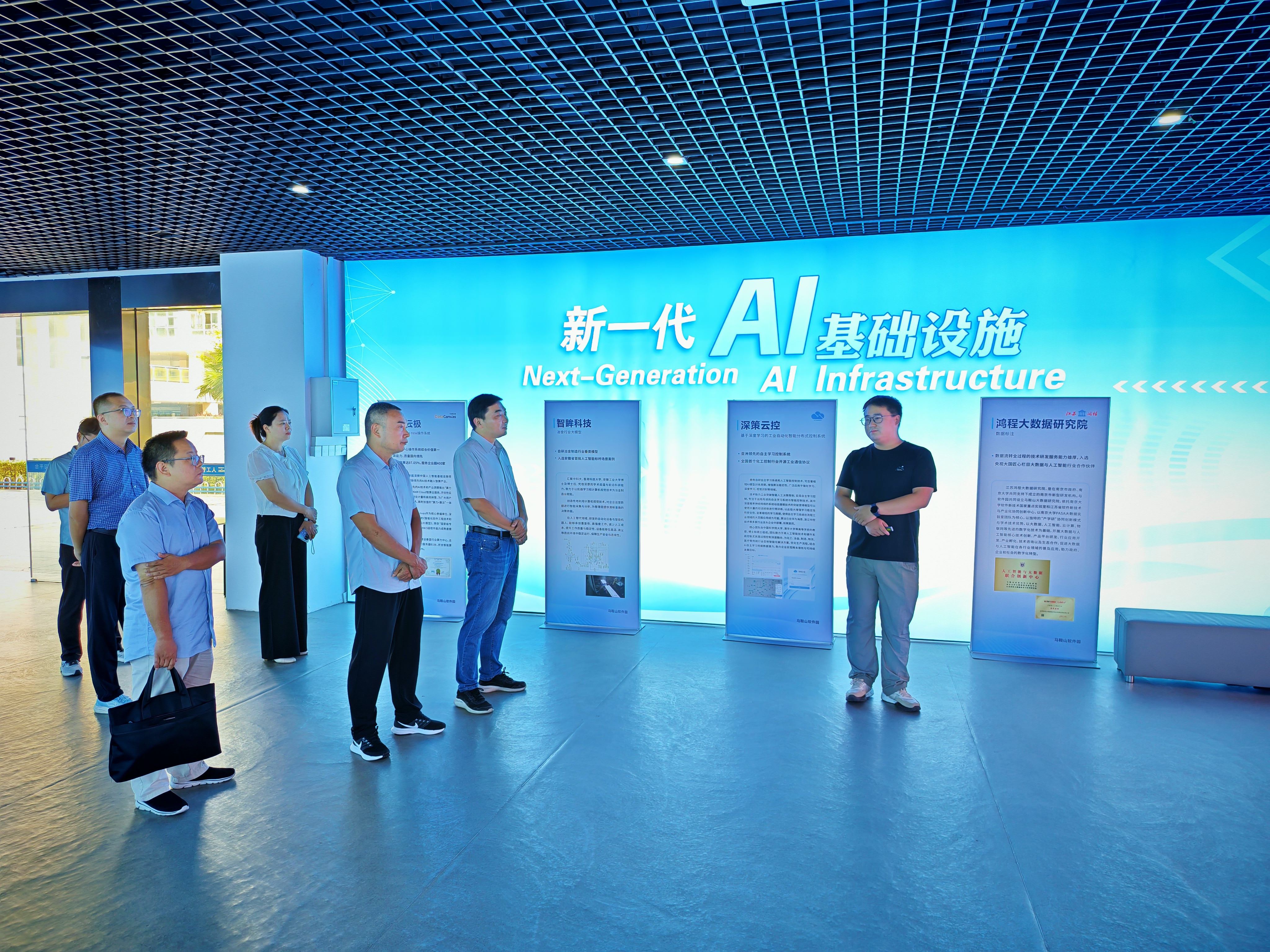 调研组前往马鞍山市花山区垂直行业AI大模型训练算力中心实地调研并与有关负责同志交流。该中心由花山区政府和北京九章云极科技有限公司、江东产投集团联合投资建设,是马鞍山市唯一大规模人工智能算力集群,首批投入3.3亿元,总体规划算力达1600P。“1P算力相当于每秒千万亿次计算能力,完成部署后相当于75万台个人电脑的算力总和。”项目负责人介绍,该中心主要应用场景为各行各业大模型的构建,为政务决策、城市管理、民生服务等领域的智能应用开发提供底层算力支撑。