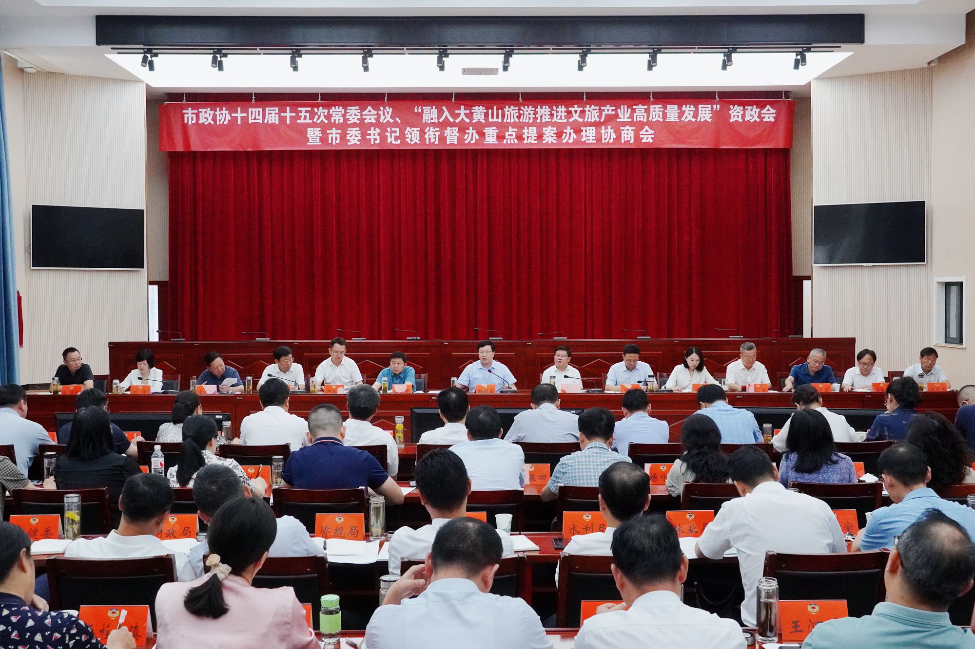 会议听取了市政府对市政协2023年“关于历史文化名城保护复兴的建议案”办理情况的通报,陈倩代表市政协作了题为《加速融入大黄山旅游,推进潜山文旅产业高质量发展》的主题发言;与会人员集中观看了市政协“融入大黄山旅游,推进文旅产业高质量发展”资政会专题片,并围绕主题开展了协商建言。农业农村局及提案人对市委书记领衔督办重点提案进行了研讨汇报,4个部门对委员的意见建议进行了回应发言。