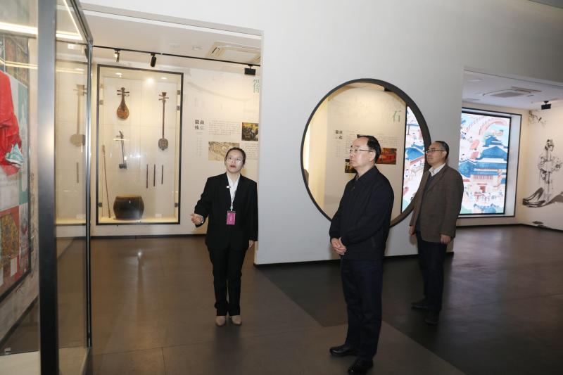 孟景伟一行首先来到徽班博物馆,详细了解徽班进京等戏曲发展历史,察看戏服体验、戏曲研学、文创产品等新业态,询问场馆市场化运营情况。他强调,要持续挖掘好、展示好京剧、黄梅戏的历史脉络与文化魅力,丰富“戏曲+”文旅业态,精心打造“京黄”体验之旅,真正将博物馆办出特色、办出效益、办出影响力。在石牌镇综合文化服务中心,孟景伟强调,要坚持服务群众、以戏动人,既要传承好经典“老戏”,更要创新创排传唱度高的“新戏”,让黄梅戏持续焕发生命力。