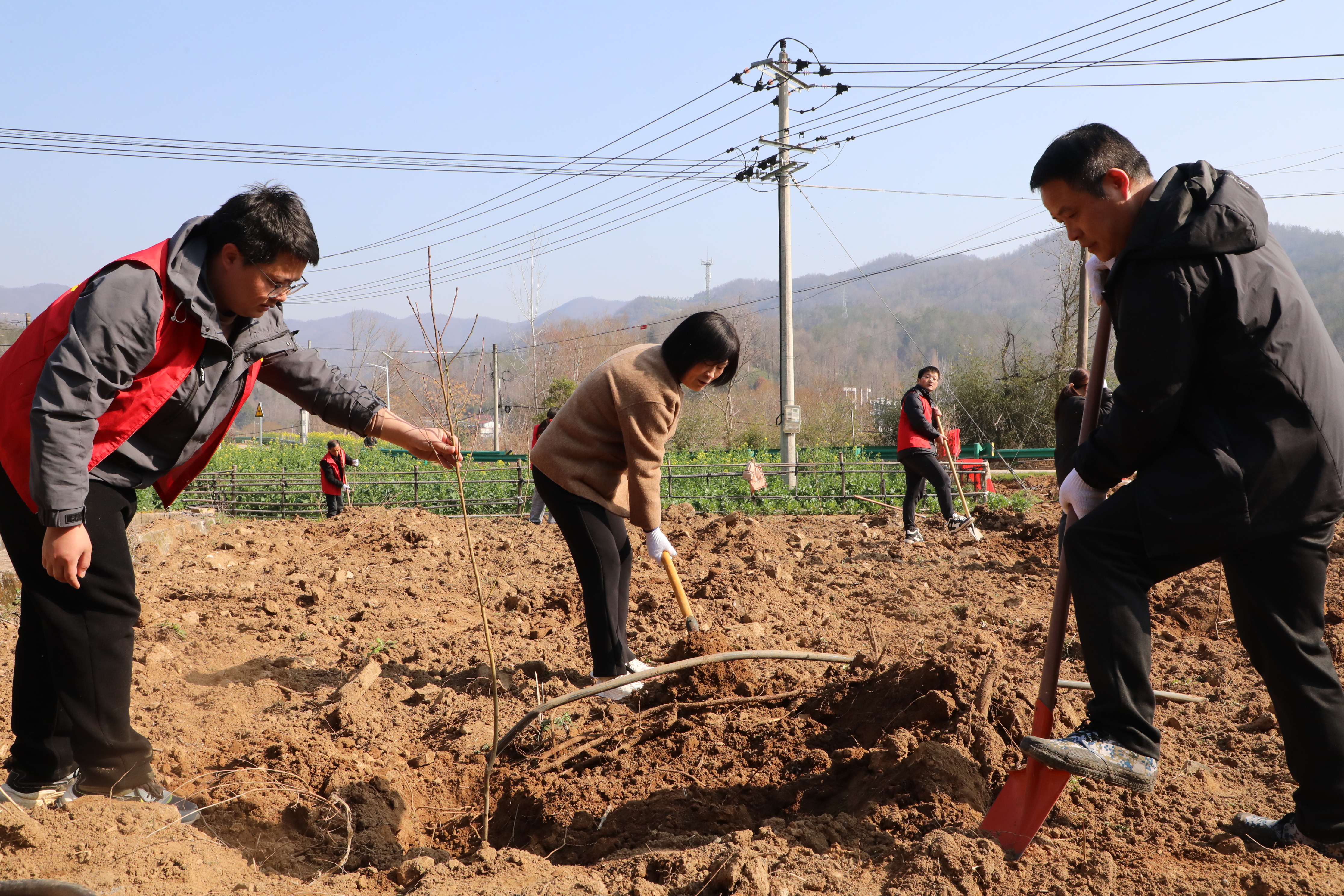 春光暖野,植树现场一片热火朝天。政协委员们与志愿者们分工协作、配合默契,挥锹铲土、扶苗填坑、踩实浇水,每一个步骤都细致严谨。新栽的百余株树苗迎风挺立,在春日的阳光下舒展枝丫,为静谧的乡村增添了勃勃生机。