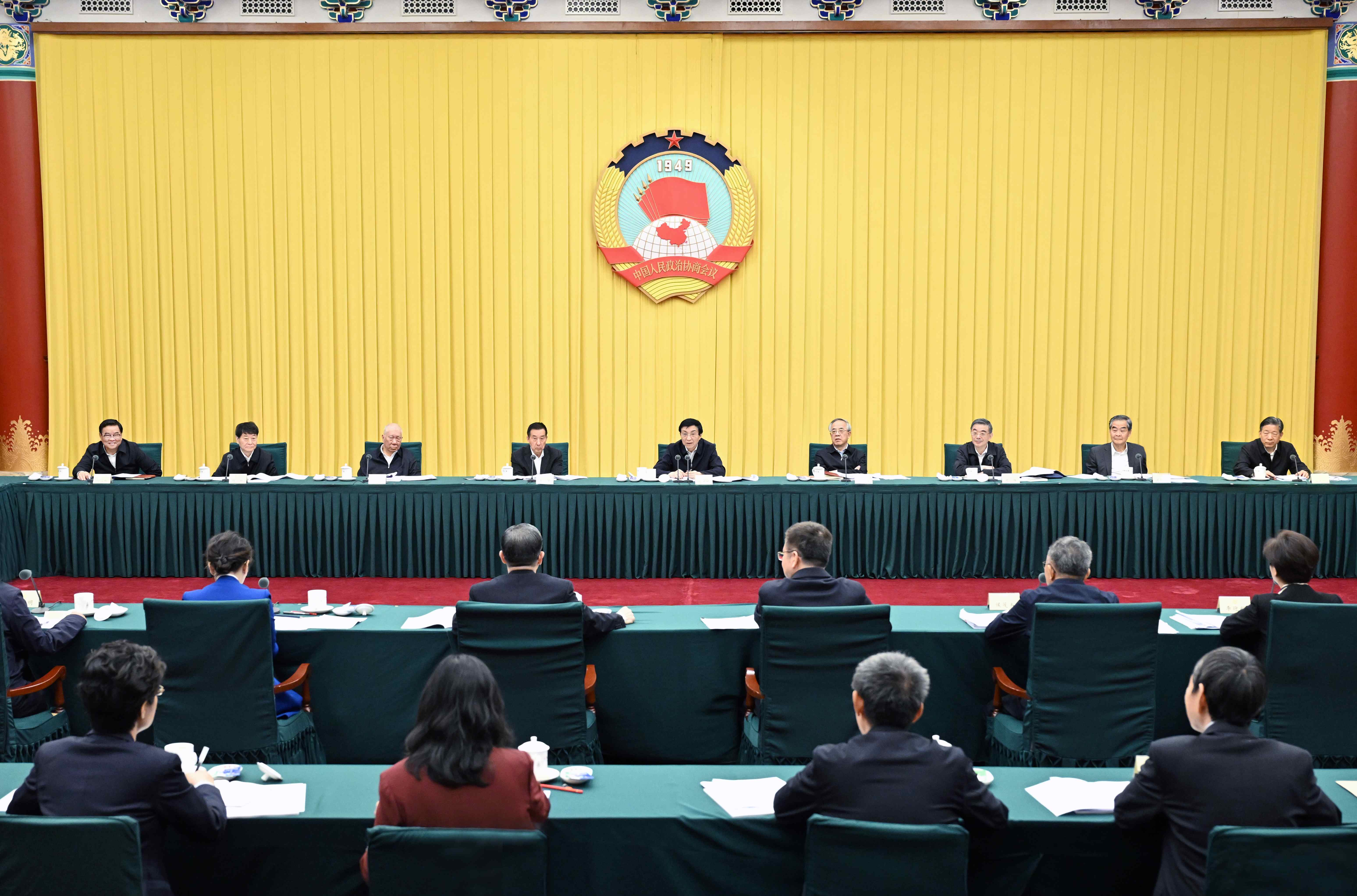 4月24日,十四届全国政协第四十三次双周协商座谈会在北京召开,中共中央政治局常委、全国政协主席王沪宁主持会议。人民政协报记者 齐波 摄